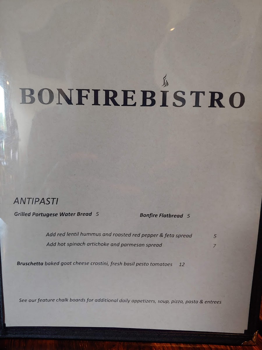 For protein lovers, the New Zealand Lamb Shank and Organic King Salmon promise to tantalize your taste buds, each dish meticulously prepared to ensure satisfaction. A fine selection of wines, including Sisters Run Chardonnay and Santa Margherita Pinot Grigio, complements the dining experience. Bonfire Bistro is not just a meal but a culinary journey—where every forkful is an invitation to return.